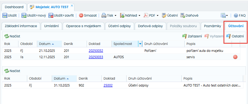 Díky tomu máte všechny informace o majetku přehledně na jednom místě, bez nutnosti dohledávat dokumenty v různých částech systému.