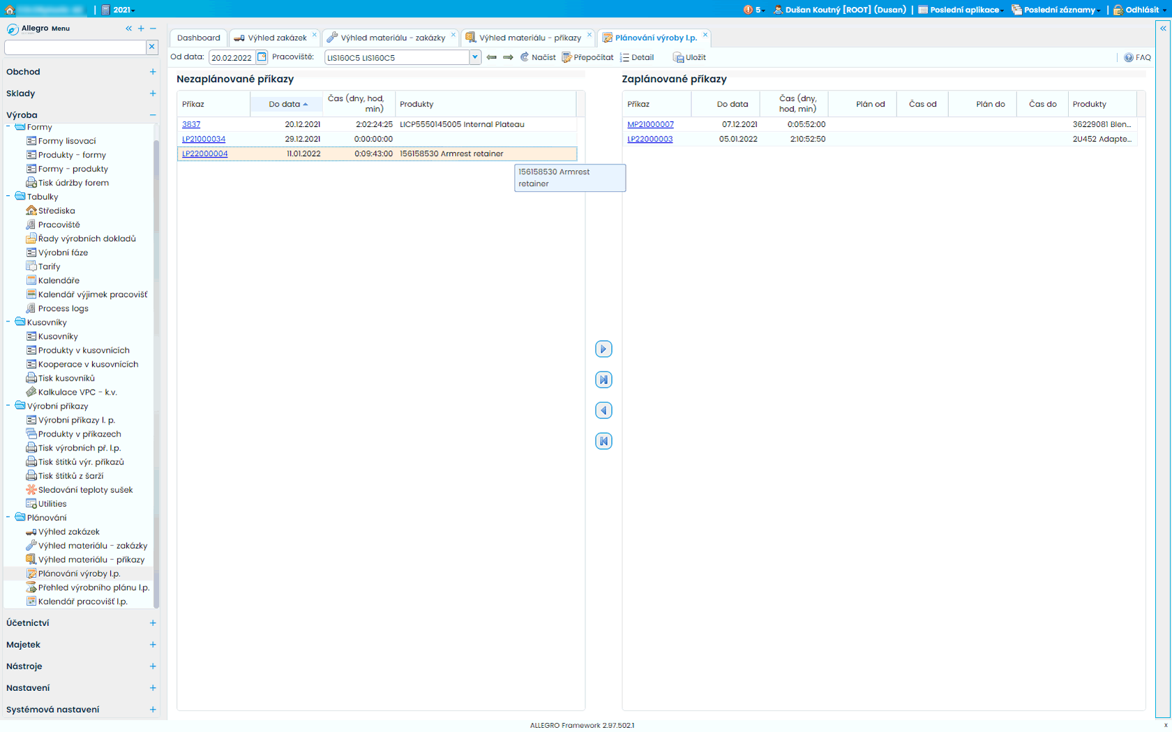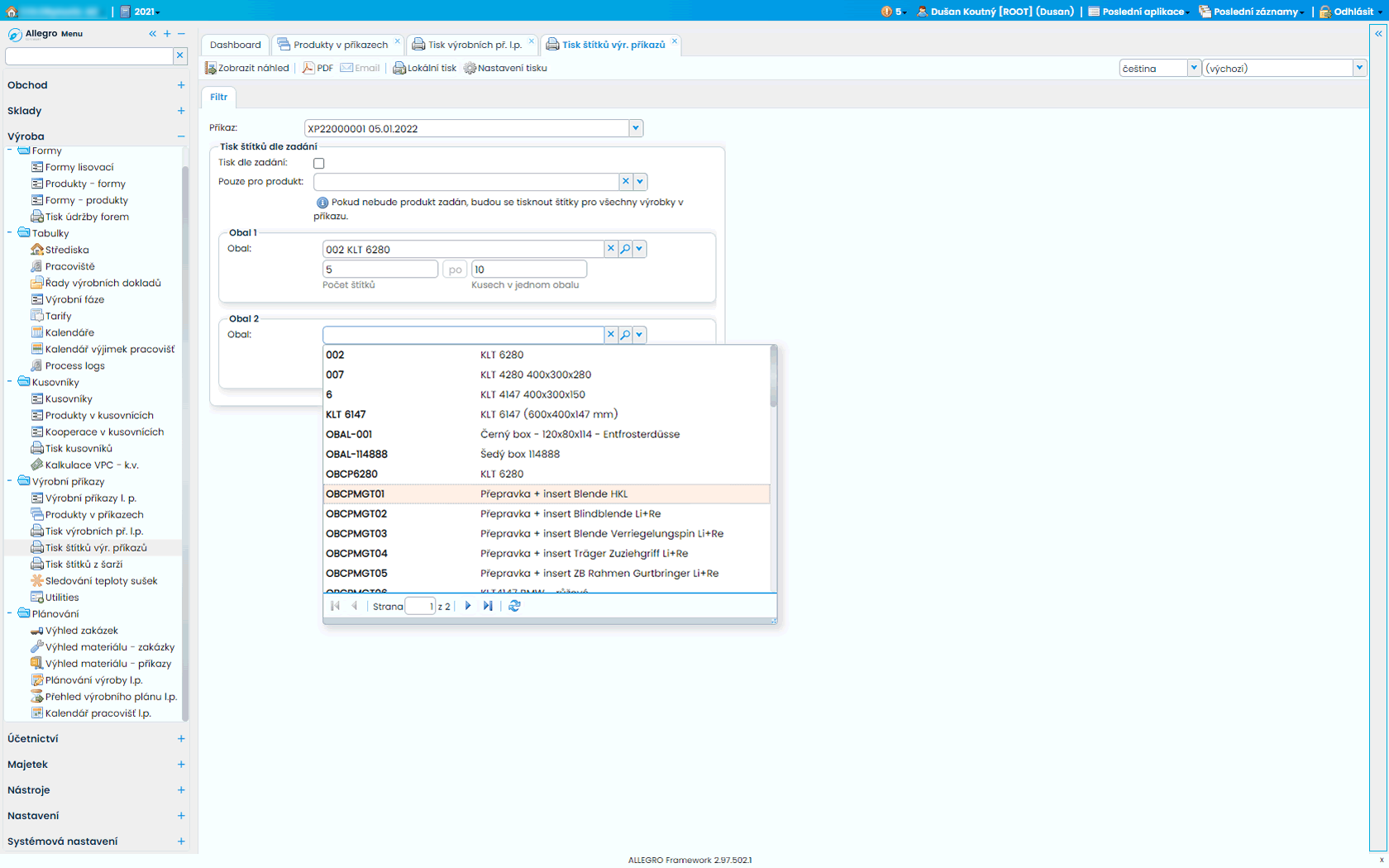 - Využívá kusovníky a výrobní příkazy